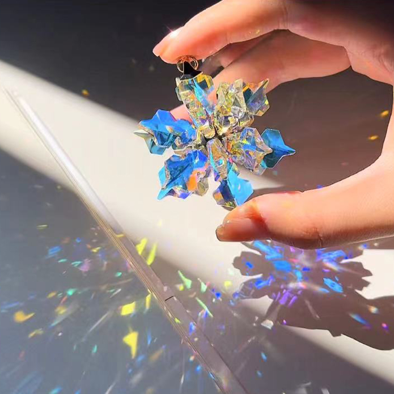 Bring a touch of elegance and good fortune into your life with our Radiant Snowflake Crystal Pendant. Designed with precision, this pendant captures sunlight and transforms it into a dazzling display of rainbow colors. Through the natural process of light diffraction, the high-quality crystal separates sunlight into a stunning spectrum, casting a multi-colored glow that enchants and captivates.