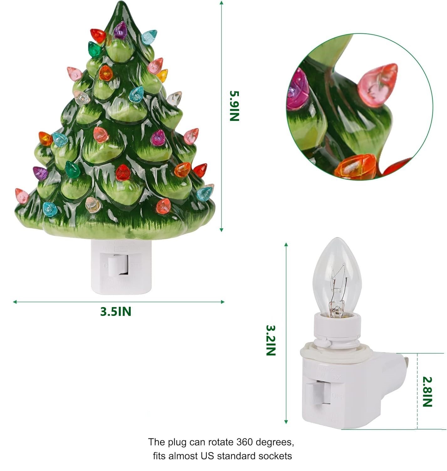 The holiday ceramic tree is 5.9 inches tall, ideal to create a warm and welcoming Xmas sight in a dim hallway, bedroom, or bath. A perfect addition to your holiday decoration and will last for many seasons.