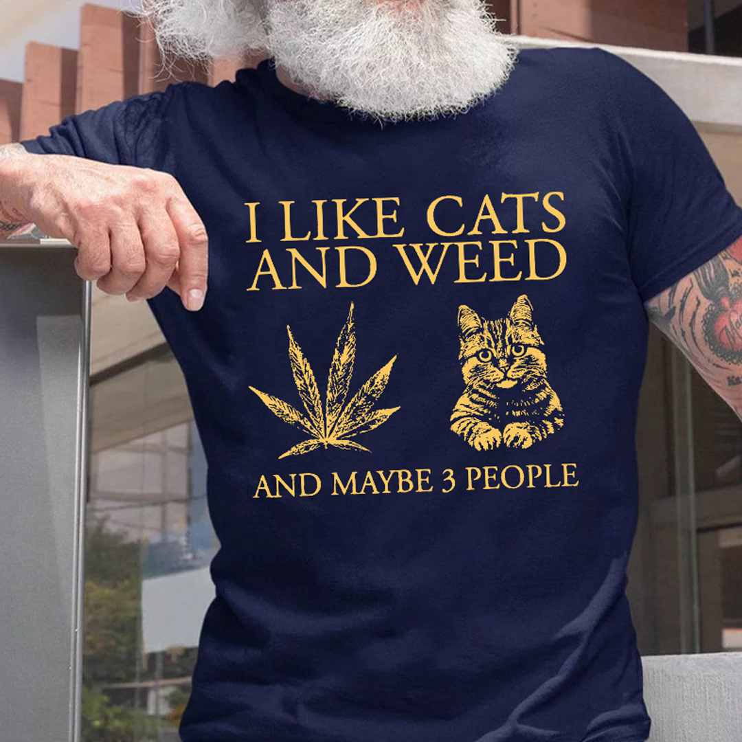 I Like Cats And Maybe 3 People Men's Short Sleeve Antibacterial cotton Printed T-shirt