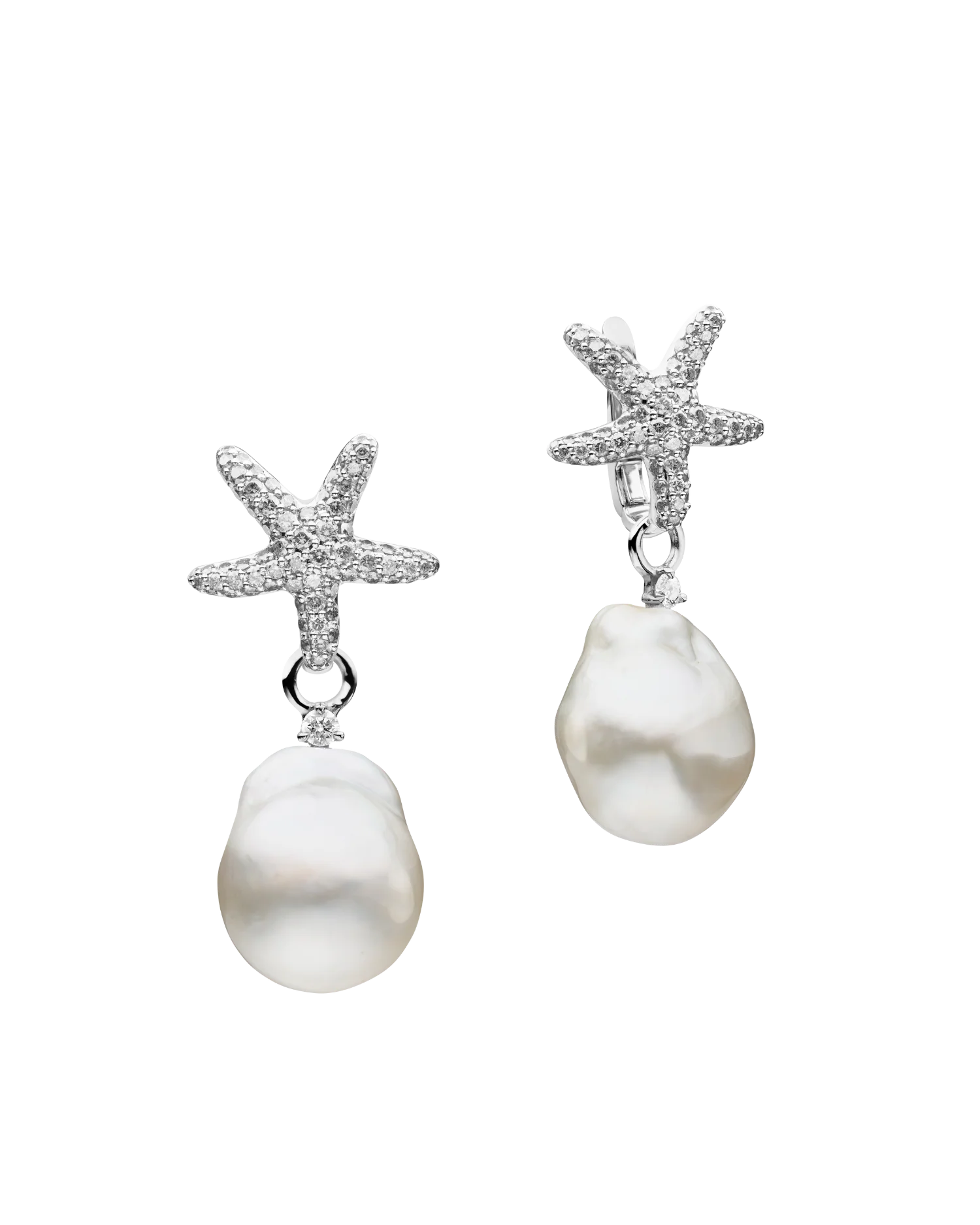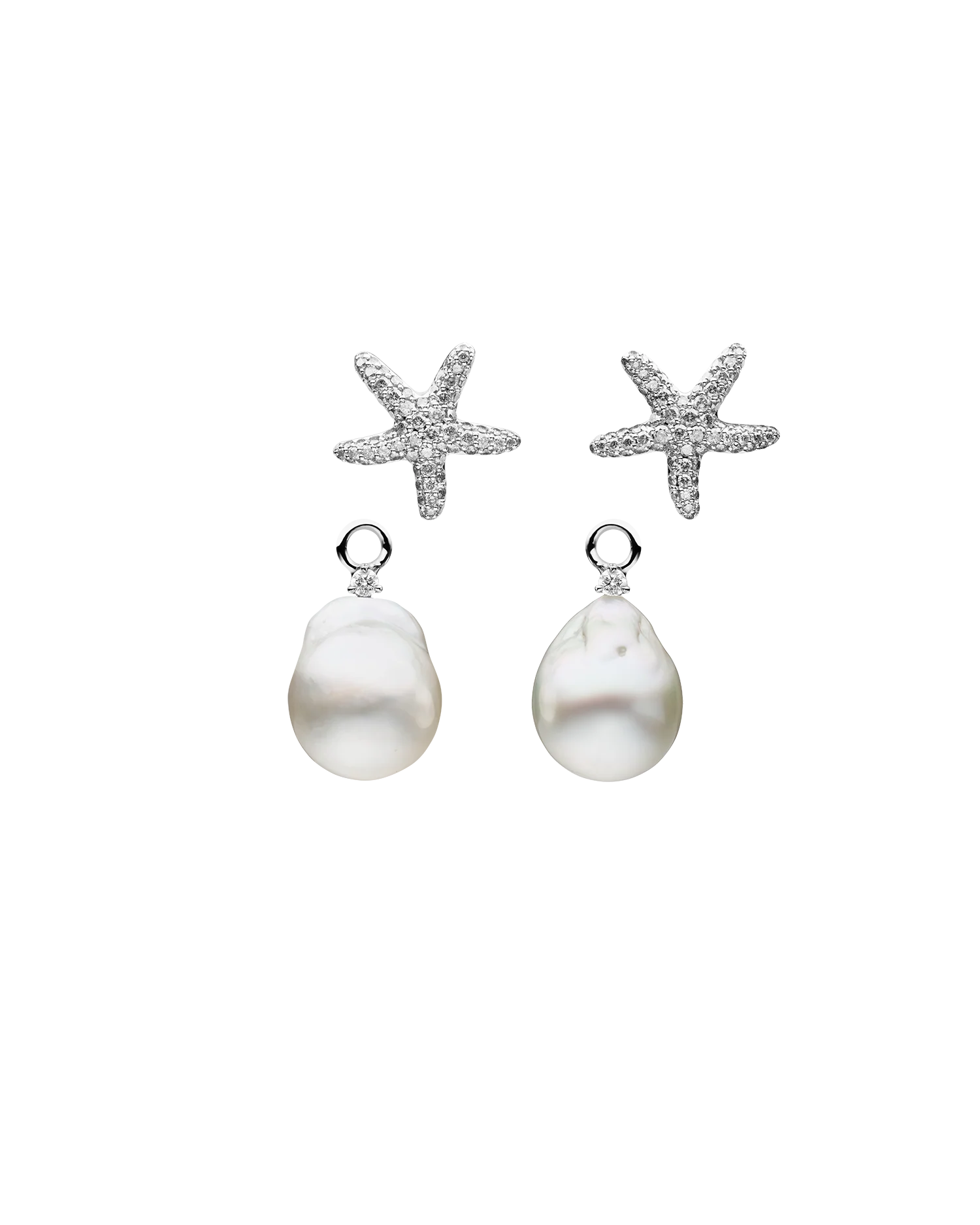Bold and radiant, these pearl drop earrings honour the beauty of 14mm baroque Australian South Sea pearls, each one distinct in shape and intense in lustre. Paired with playful Diamond Starfish Earrings in 18K white gold, cobblestone pave white diamonds add luminous contrast. Designed for versatile styling, the tops can be worn alone, with other Pearls My Way combinations, or with Paspaley Earring Enhancers.