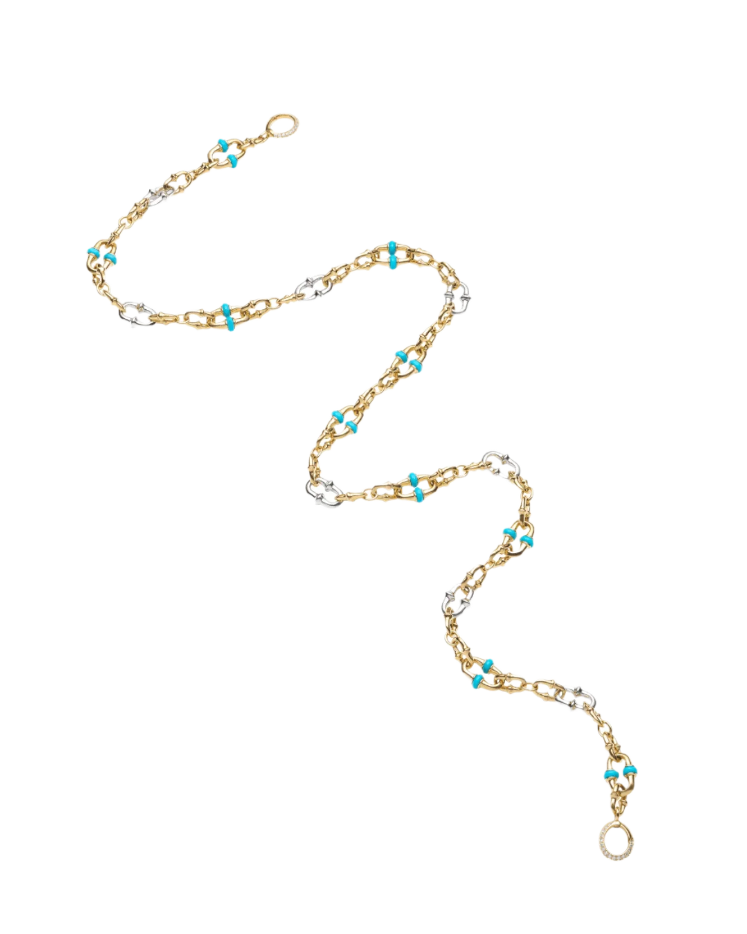 Turquoise Dive Chain Necklace | Turquoise, White Gold, and Yellow Gold